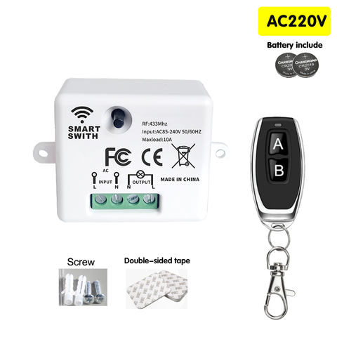 433Mhz Ac 110V 220V Draadloze Rf Afstandsbediening Schakelaar 1ch Relay Ontvanger Met Aan/Uit Zender Voor Led Gloeilamp Diy Control
